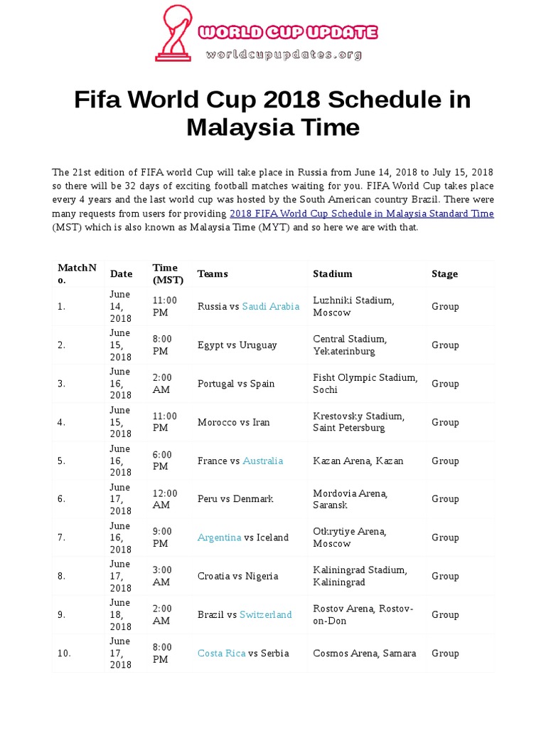 Related : Fifa World Cup 2018 Schedule Malaysia : Fifa world cup russia schedule..