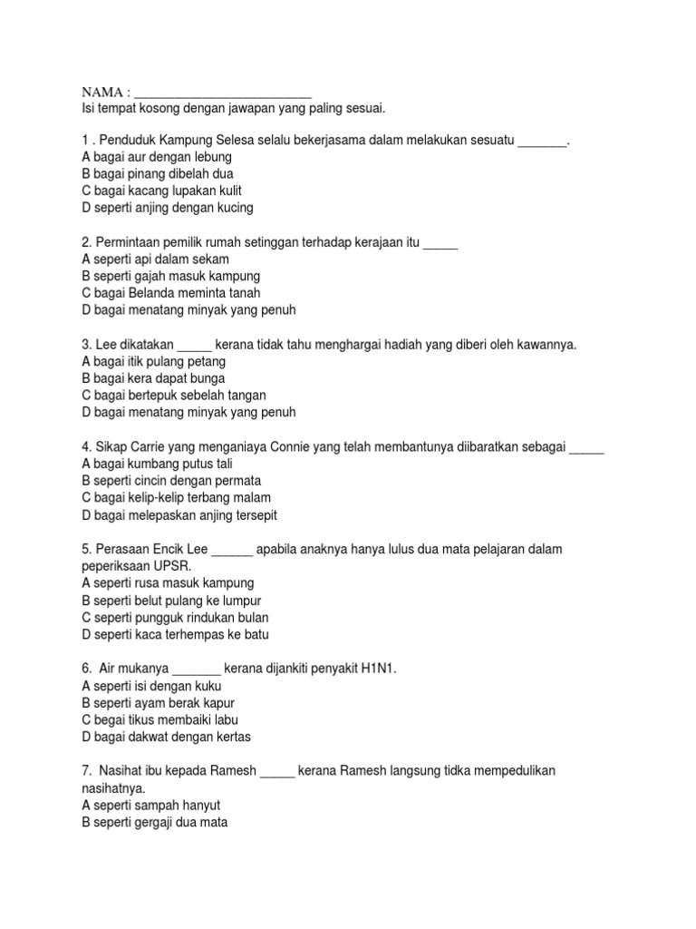 Celik Peribahasa Bagai Ayam Disambar Helang Youtube from i.ytimg.com Selamat datang semua!video yang dibina ini sangat sesuai bagi murid sekolah rendah untuk mempelajari dan menguasai mata pelajaran bahasa melayu. Nah, salah satu sajian ayam yang saat ini sedang populer yaitu ayam. A seperti lipas kudung b seperti ayam berak kapur c seperti bulan penuh purnama d seperti kera sumbang. Siapa yang tidak kenal dengan ayam penyet? 4 seperti ayam disambar helang maksud: Orang yang mendapat sesuatu barang, tetapi tidak tahu bagaimana hendak menggunakan barang itu. Ayam pikat di sambar elang ganas,. 5 bagai kera mendapat bunga maksud: